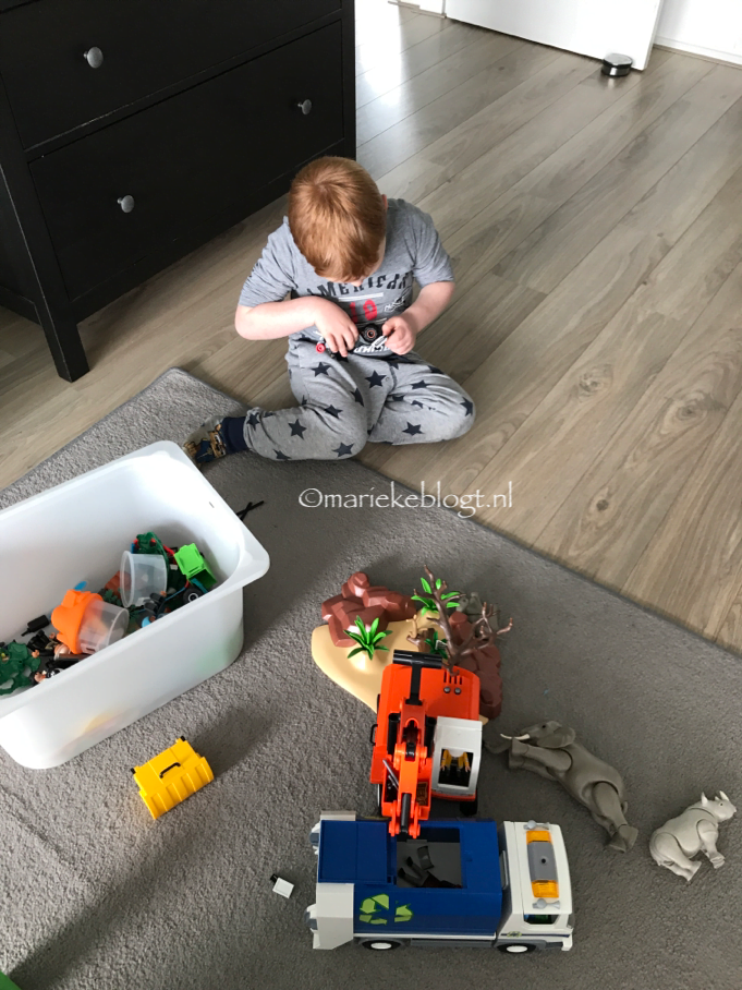 Na het ontbijt gaat Erik de banden van zijn auto wisselen. De kinderen kunnen lekker mee om in de speeltuin te spelen. En ik raus even met Ed Sheeran door het huis heen. De kinderen komen daarna binnen. En als Giulia haar tukkie gaat doen, speelt Luca op de iPad en met Playmobil.