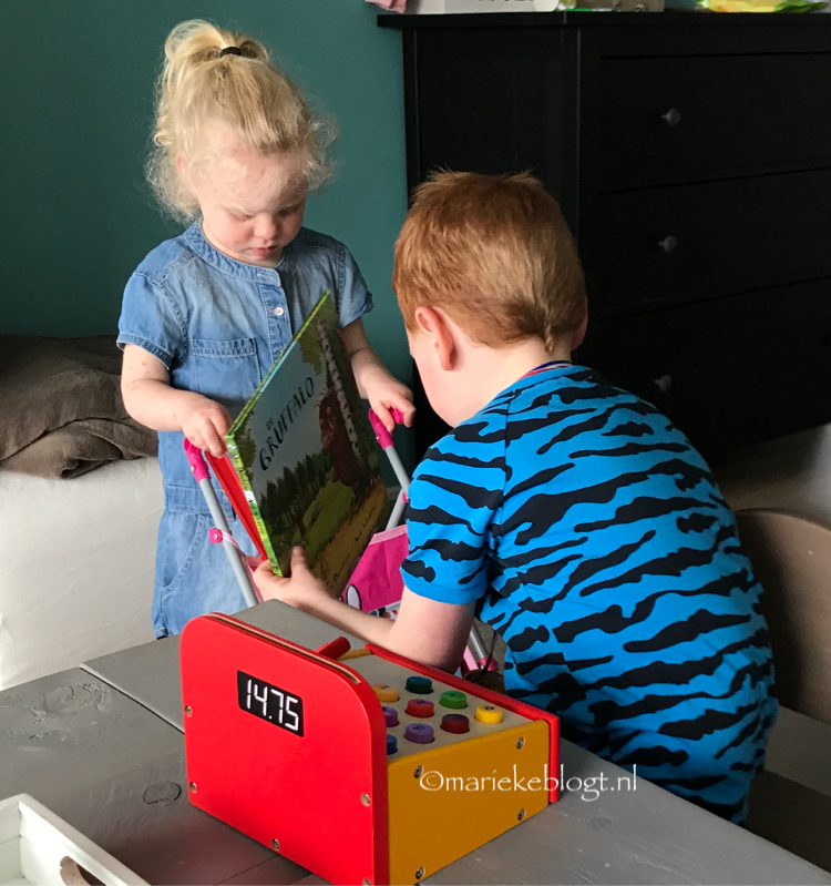 Als de kinderen aangekleed zijn, spelen ze winkeltje.