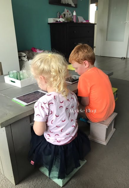 Als ze beide wakker zijn, spelen ze spelletjes op de i-Pad.