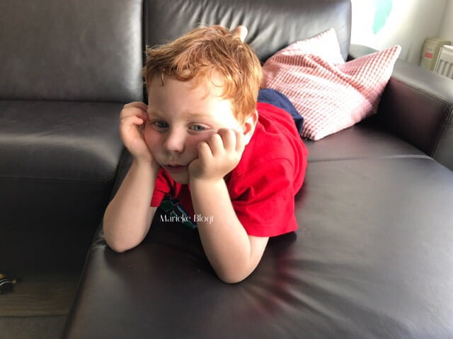 Na het avondeten mogen ze nog even televisie kijken. En ik kan zo genieten van mijn bink als hij zo op de bank ligt.