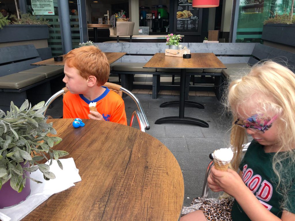 Na schooltijd haal ik de kinderen op en gaan we geheel volgens traditie een ijsje eten bij Verhage om de zomervakantie in te luiden.