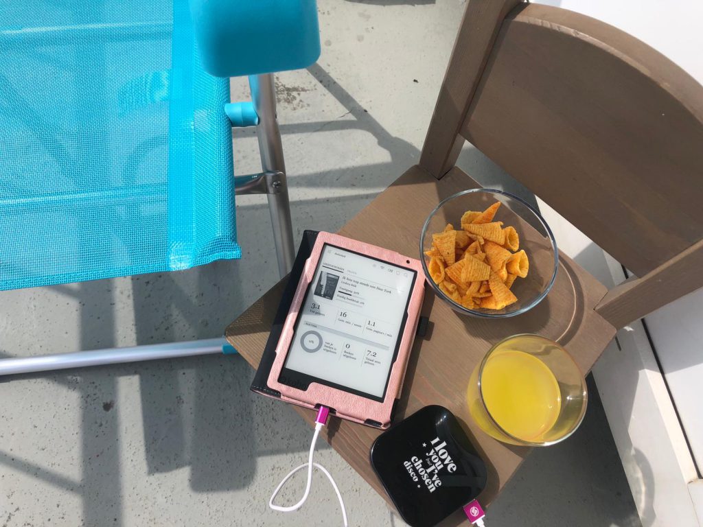 ‘s Middags probeer ik alvast het campinggevoel te krijgen op het balkon en dat lukt redelijk met een boek, wat drinken en wat lekkers. Terwijl de kinderen volop met Lego aan het bouwen zijn.