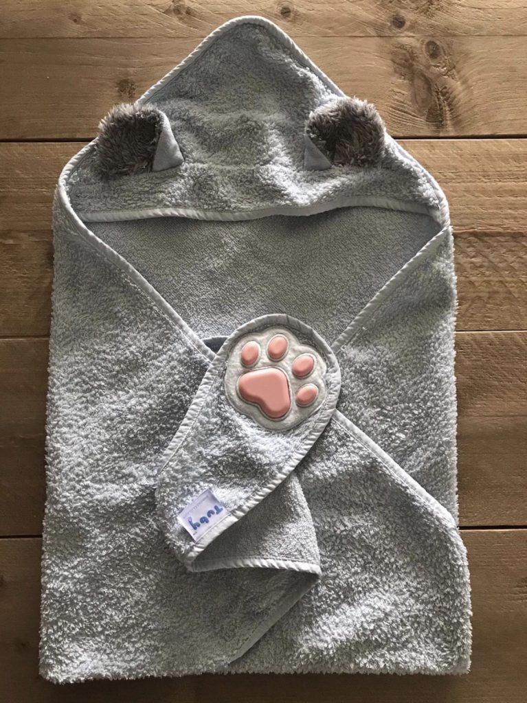 Er zijn drie varianten van de Tuby badcape, te weten de grijze Panda, de blauwe Koala en de beige Monkey. Alle drie zijn ze gemaakt van biologisch katoen en de afmeting is 75x75x3,5 cm. Lekker groot en genoeg handdoek om je baby in te wikkelen. Door het speciaal verzwaarde pootje, is de badcape zwaarder dan andere capes. Hierdoor blijft de handdoek beter achter je schouder hangen.