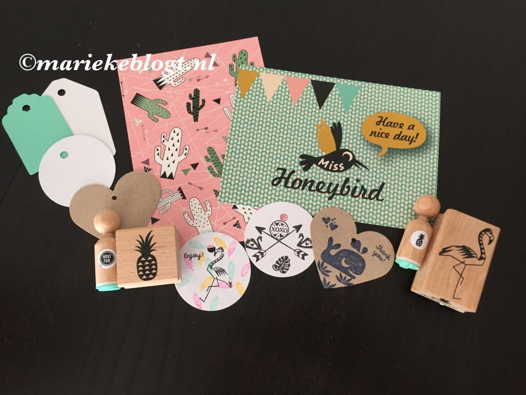 Alleen de naam is al een reden om op de link van de shop te willen klikken. En de eerste keer dat ik dat deed, wist ik niet zo goed wat ik kon verwachten. Maar Miss Honeybird blijkt een “stempel-walhalla” te zijn. Je begrijpt dat ik daar ontzettend vrolijk van werd. Je kan het zo gek niet bedenken of Simone, alias Miss Honeybird, heeft er een stempel van. Van een veer tot een eenhoorn, van een ananas tot een flamingo. You name it en ze verkoopt het. Daarnaast vind je er ook kaartjes, posters, allerlei kleuren en soorten cadeaulabels, stempelkussens en bakerstwine. En als je echt iets unieks wilt, dan zijn er ook nog een aantal stempels die je kan personaliseren.