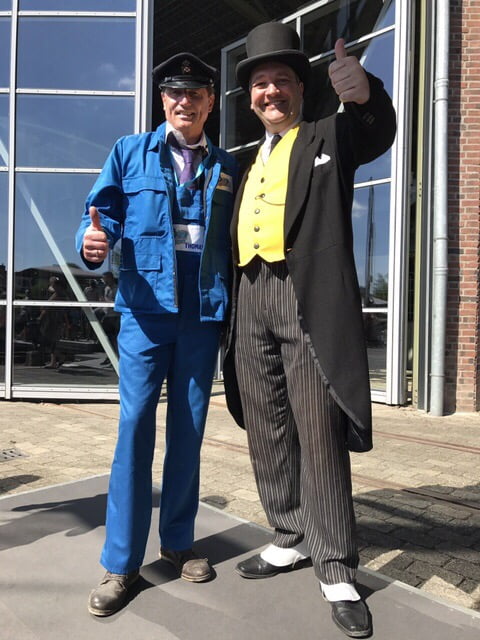 Als je het perron af bent gelopen, kom je in de grote hal, waar het Thomas de Trein evenement wordt gehouden. We besluiten om eerst een rondje te lopen langs oude treinen. En als we buiten aankomen, zien we daar de Dikke Controleur staan, die staat te wachten op Thomas, want die is te laat. Na het roepen van Thomas, komt hij aanrijden. Kinderen zijn door het dolle heen en vinden het helemaal geweldig om de trein in het echt te zien. En ze mogen ook nog met Thomas op de foto.