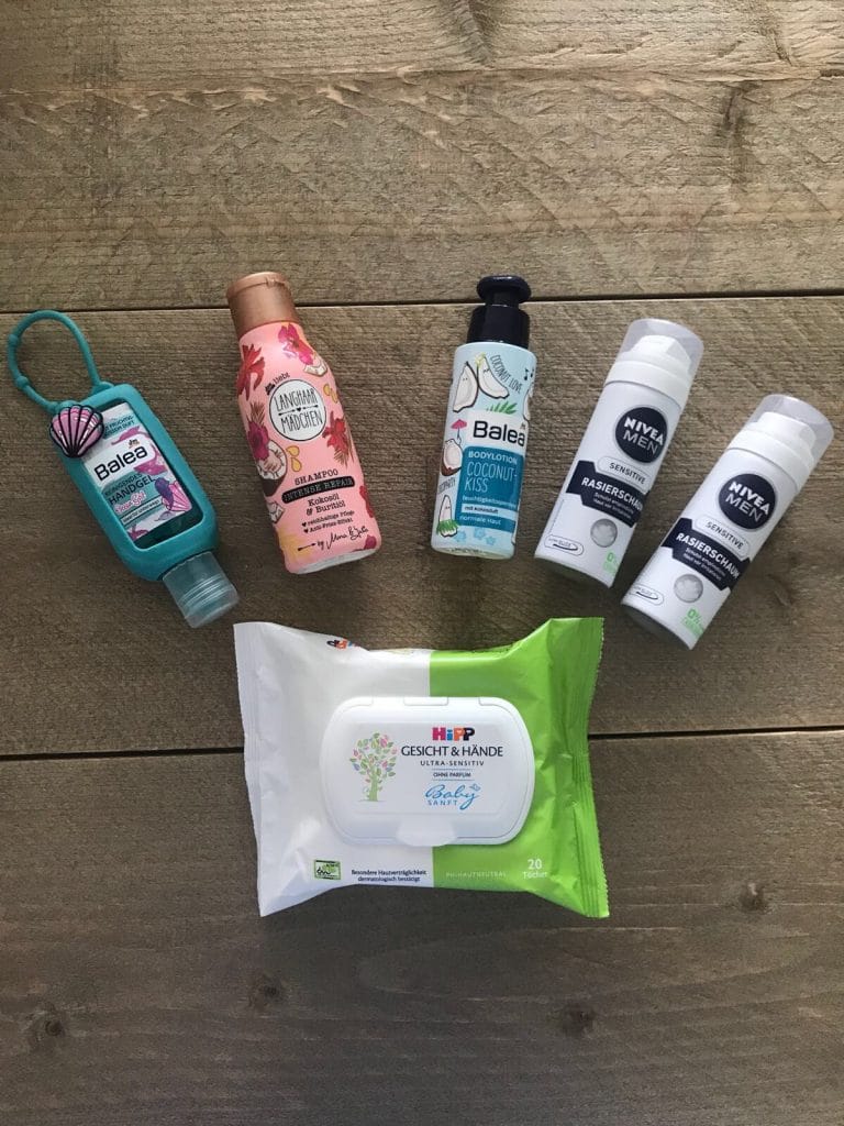 Per toeval belandde ik op het gedeelte met de mini’s. Handig voor in de toilettas, zeker omdat we toch ook op gewicht moeten letten in verband met de vouwwagen. Ik nam een flesje reinigende handgel (€1,95), shampoo voor meisjes met lang haar (€2,45), bodylotion (€0,95) en scheergel (à €0,95) mee. En nog een pakje doekjes (€1,05) voor onderweg in de auto.