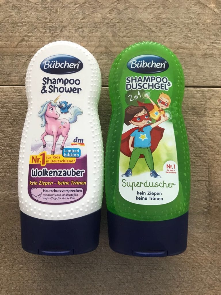 Nam ik nog douchegel mee. Voor Luca met een superheld en voor Giulia met een eenhoorn. De flessen douchegel kosten €1,85 per stuk.