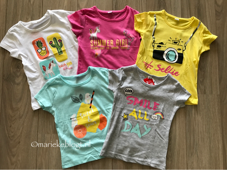 Voor Giulia scoorde ik vijf echte Giulia-shirtjes van de aanbieding. En zo heb ik bij Zeeman in totaal zeven shirtjes voor 12,50 euro. En de shirtjes met de eenhoorn zijn nu al favoriet.