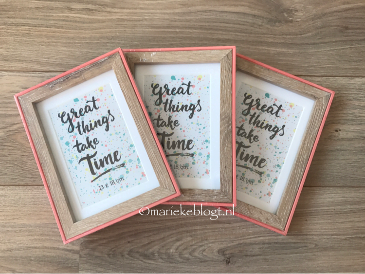Deze leuke lijstjes zag ik laatst bij Illeke Illustraties voorbijkomen. Twee zijn er voor op onze slaapkamer, want ze passen goed bij de lightballs op het hoofdeind. En de andere is een cadeautje. De quote vind ik trouwens ook erg leuk en is nog waar ook. De lijstjes kosten € 1,87 per stuk en zijn er in nog veel meer kleuren.