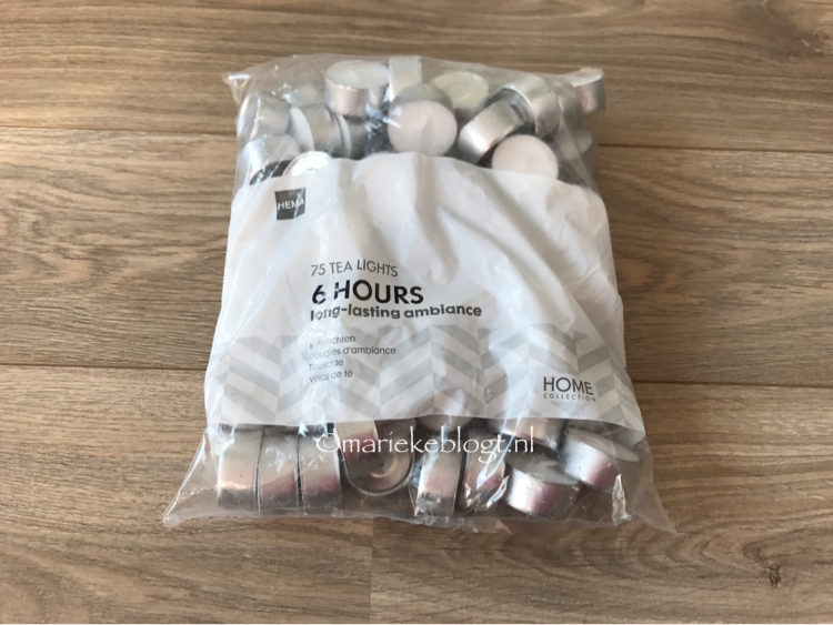 Na de Action, gaan we ook nog even naar Hema, Daar nemen we een badbloem en waxinelichtjes mee. Voor de badbloem betaalde ik een € 1,00. En de waxinelichtjes waren € 4,00 voor een zak van 75 stuks.